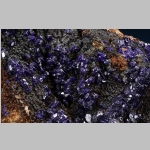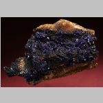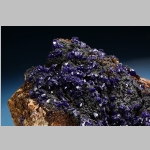 Hochglänzende kleine Azuritkristalle auf Matrix.