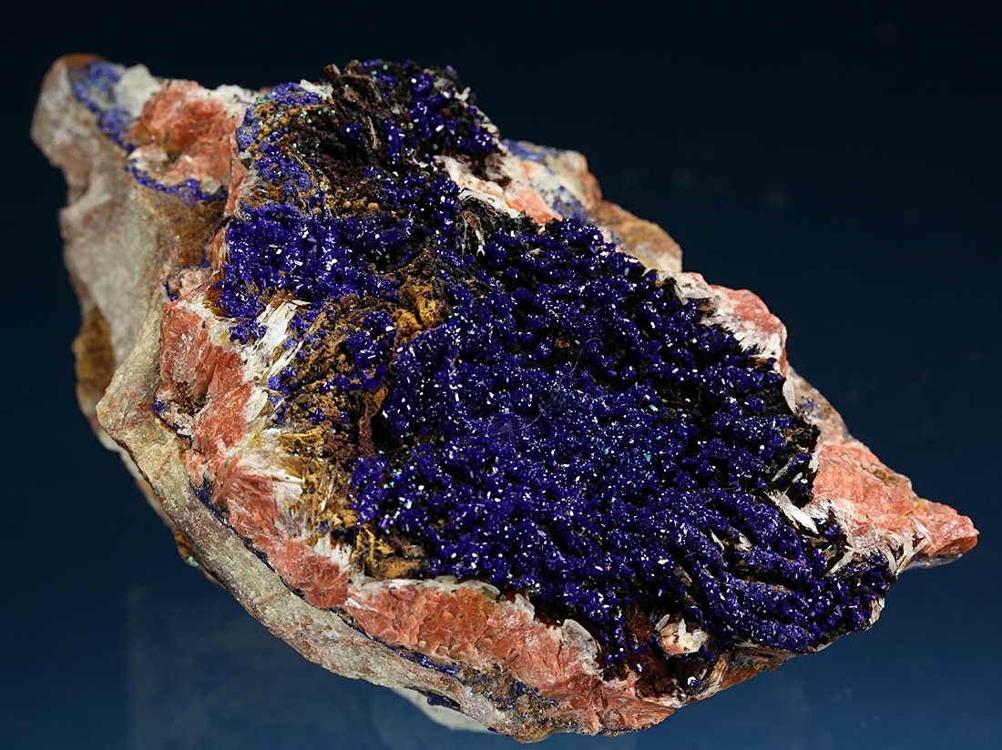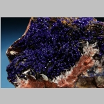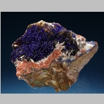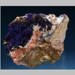 Matrix bewachsen mit Baryt, auf dem hochglänzende Azuritkristalle sitzen.