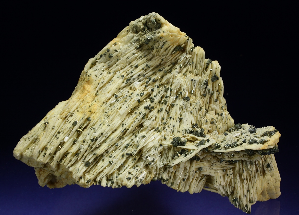 Barytmatrix mit typisch ausgebildeten Barytkristallen, überzuckert mit hochglänzendem Chalkopyrit.