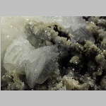 tafelförmigen Calcitkristallen sitzt (leider schlecht zu fotografieren),
