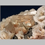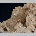 Blätterbarytkristalle, die auf Galenit sitzen, werden begleitet von einem 2,8 x 1,5 cm großen Cerussit Aggregat.