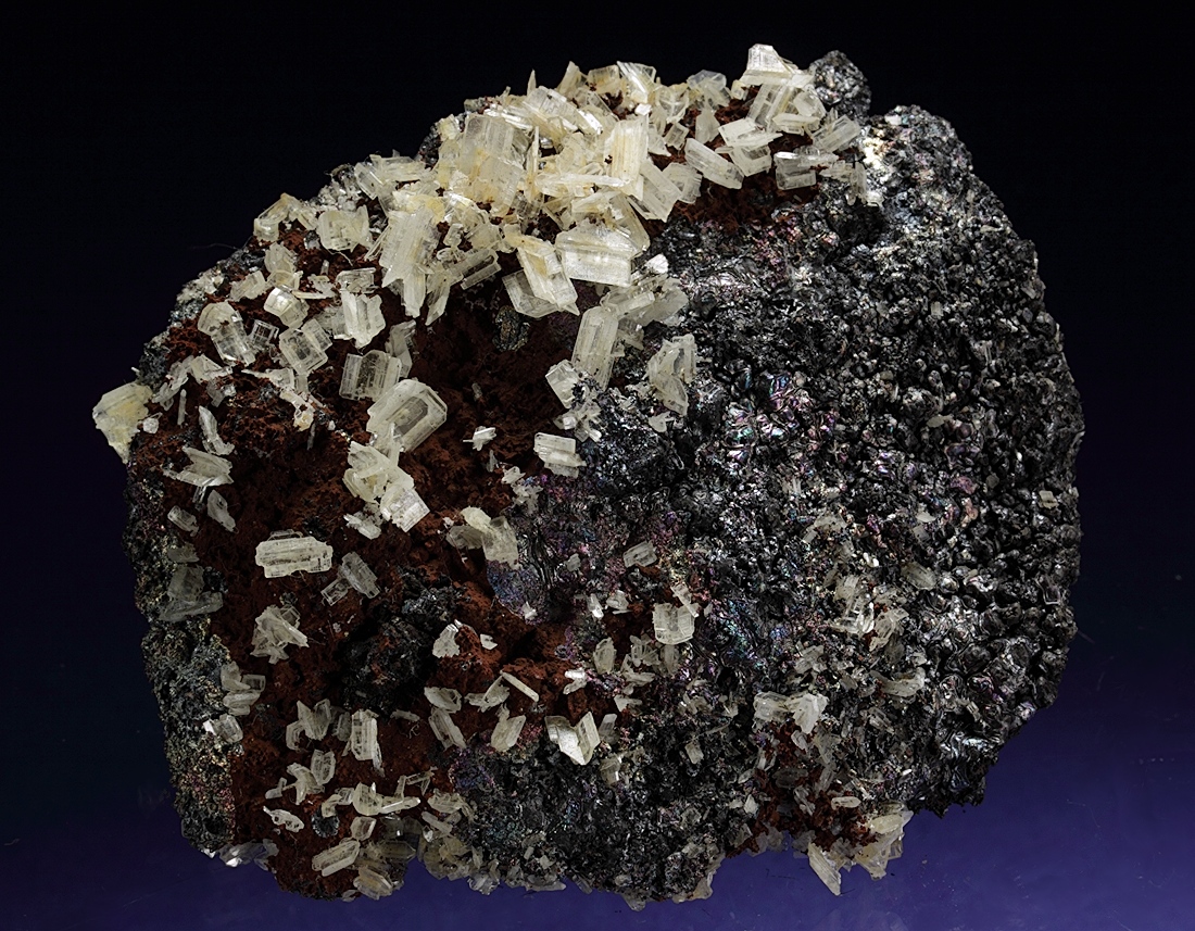Limonitmatrix überwachsen mit Goethit und sehr gut ausgebildeten Cerussitkristallen.