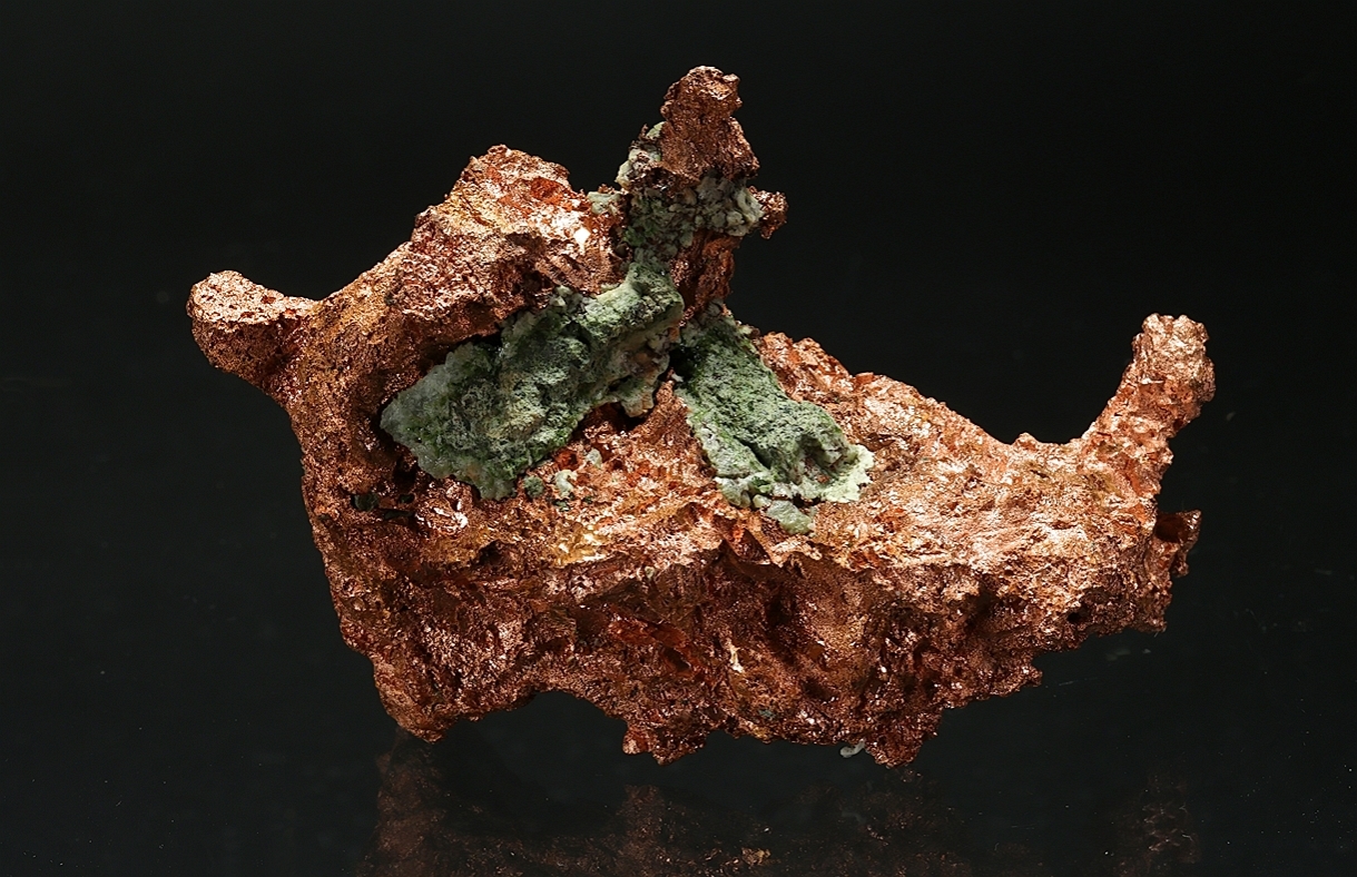 Gediegen Kupfer, hochglänzend, skuril gewachsen mit etwas Matrix.