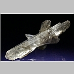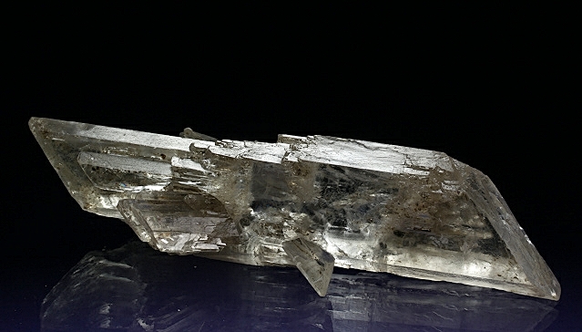 Wasserklarer Gipskristall, Doppelender mit Einschlüssen und seitlichen Auswüchsen.