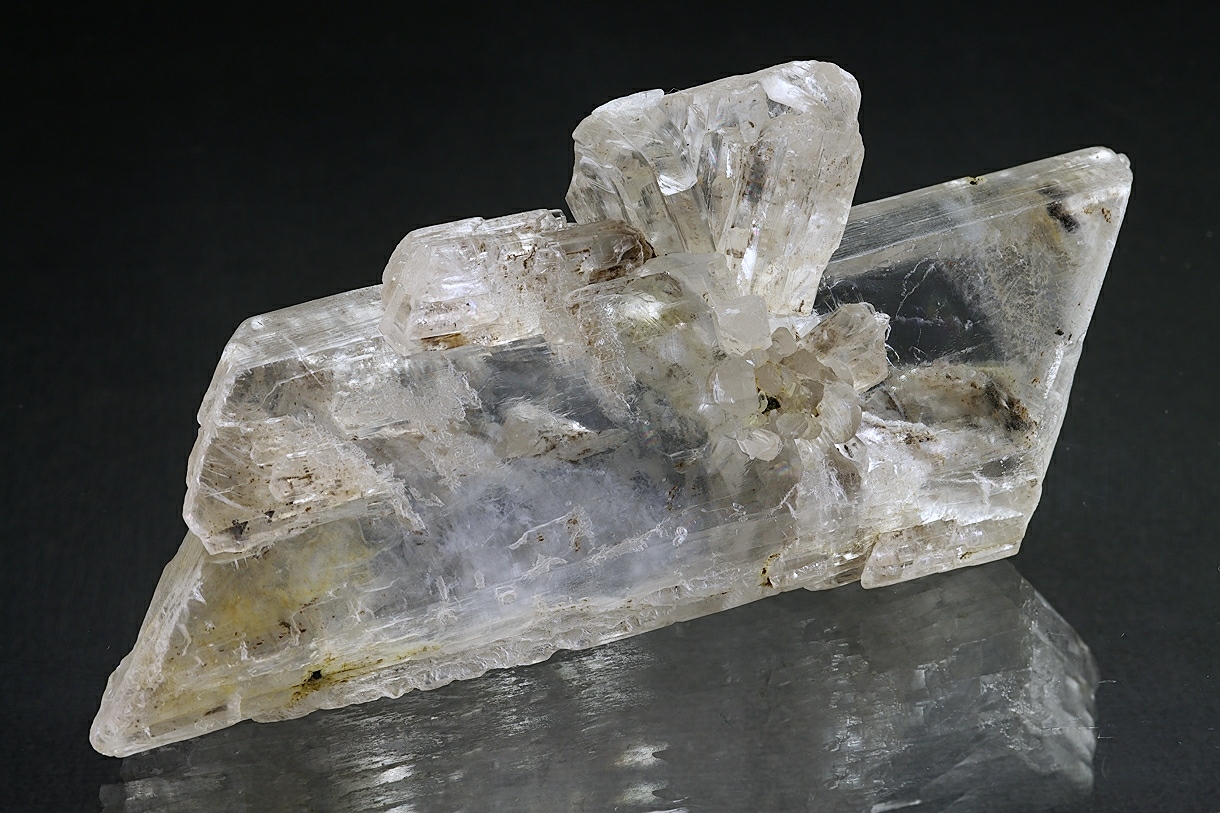 Ein als Doppelender ausgebildeter, transparenter Gipskristall, auf und an dem