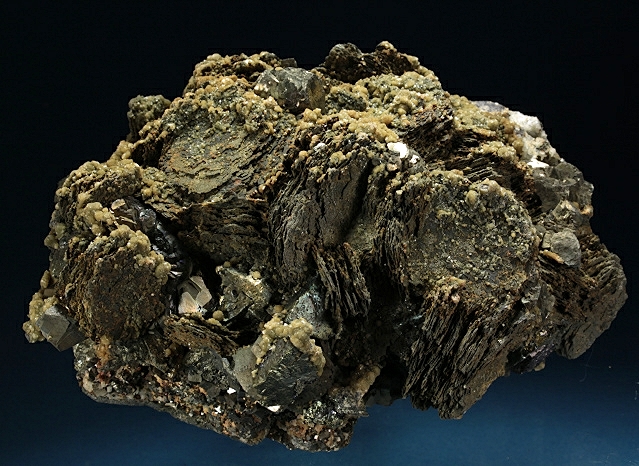 von großen Markasit- , Zinkblende und Kupferkieskristallen.