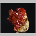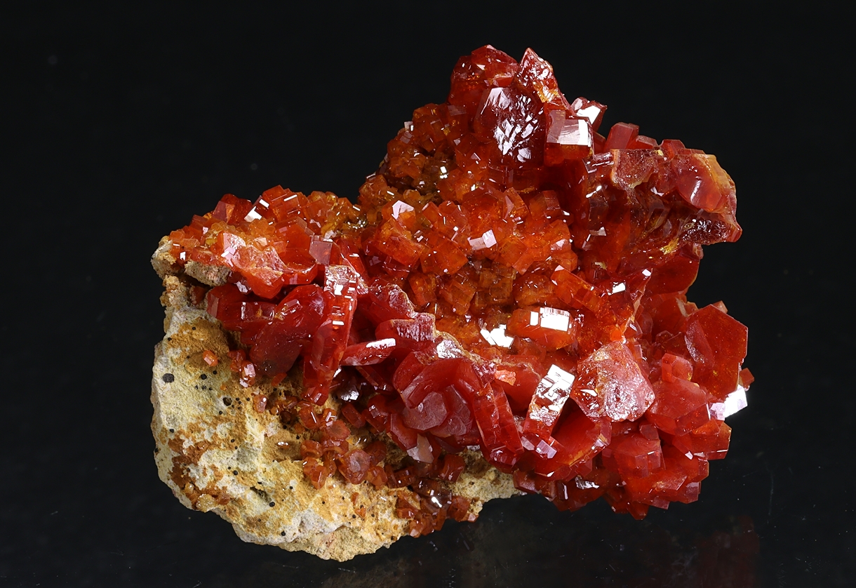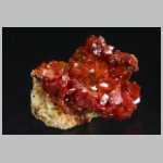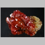Hochglänzende, tiefrote Vanadinitkristalle auf Matrix. Schön aber nicht perfekt.