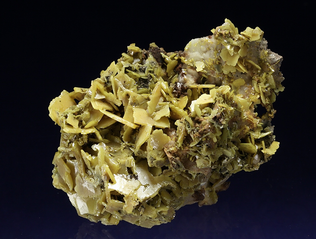 Matrix reich besetzt mit typischen Wulfenitkristallen.